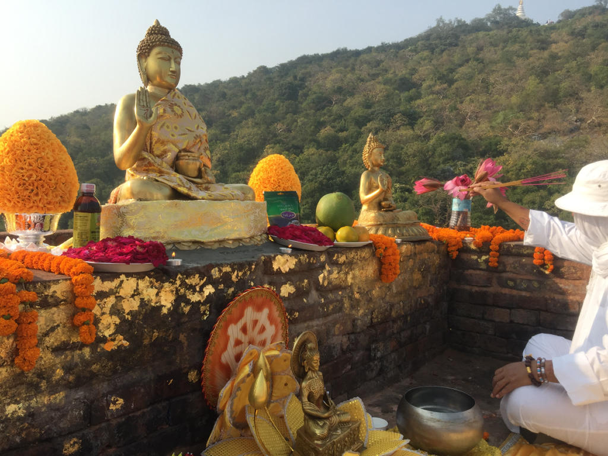 Ở trên núi cái hai hang động với hai bức hình chạm khắc của Đức Phật là nơi tu hành của Tôn giả Xá lợi phất và Tôn giả A nan. Ngoài ra còn có các ngôi chùa Phật giáo và tàn tích của một tháp phù đồ bằng gạch cổ còn sót lại. Du khách có thể đến đây qua một con đường lát đá từ tháp phù đồ Shanti nổi tiếng gần đó.